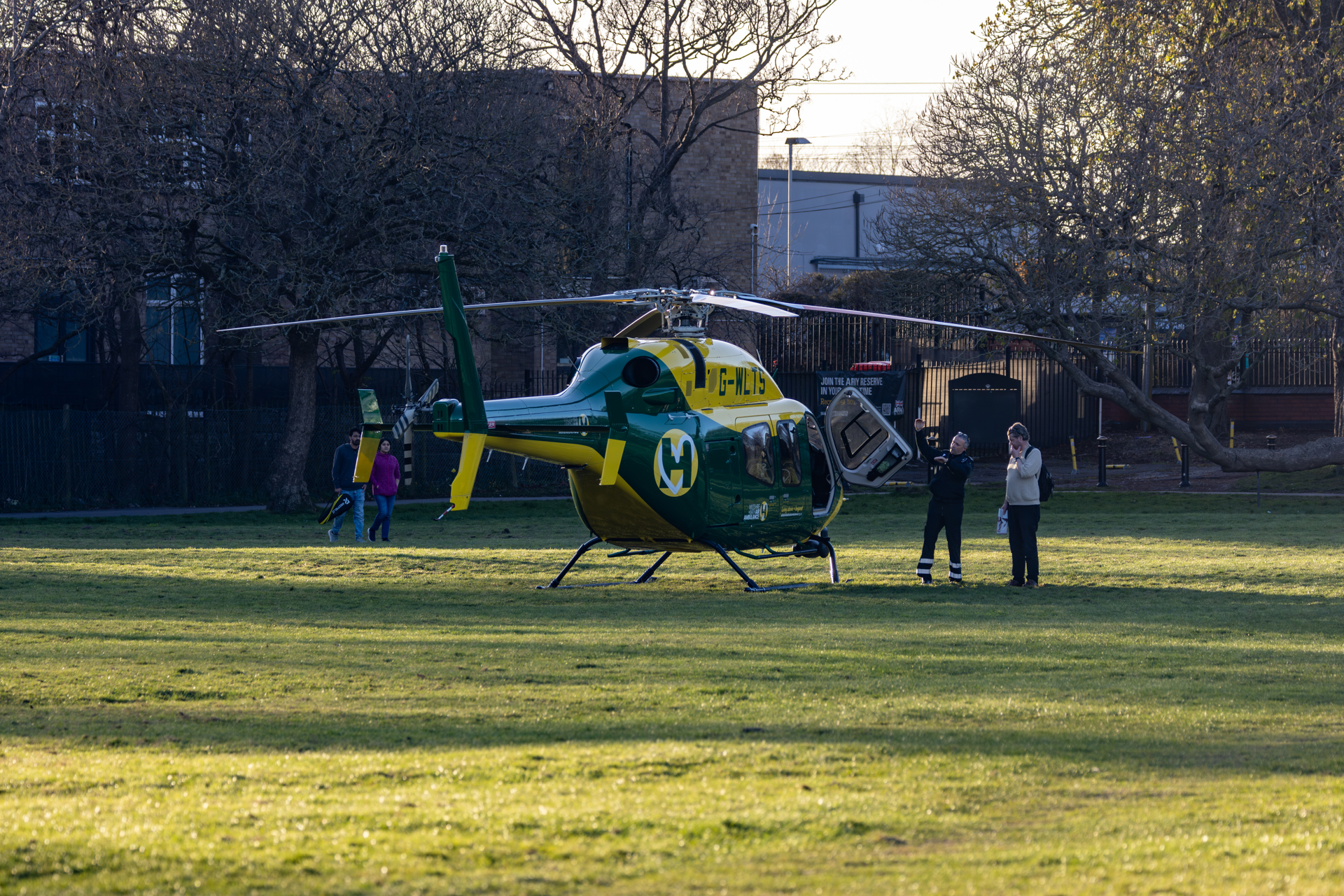 Please ensure no one approaches the helicopter until the blades have stopped turning and the pilot has left the aircraft. You will see the paramedics and doctors leave to carry out their lifesaving work, while the pilot will need to complete some essential paperwork. Please refrain from approaching them at this time.