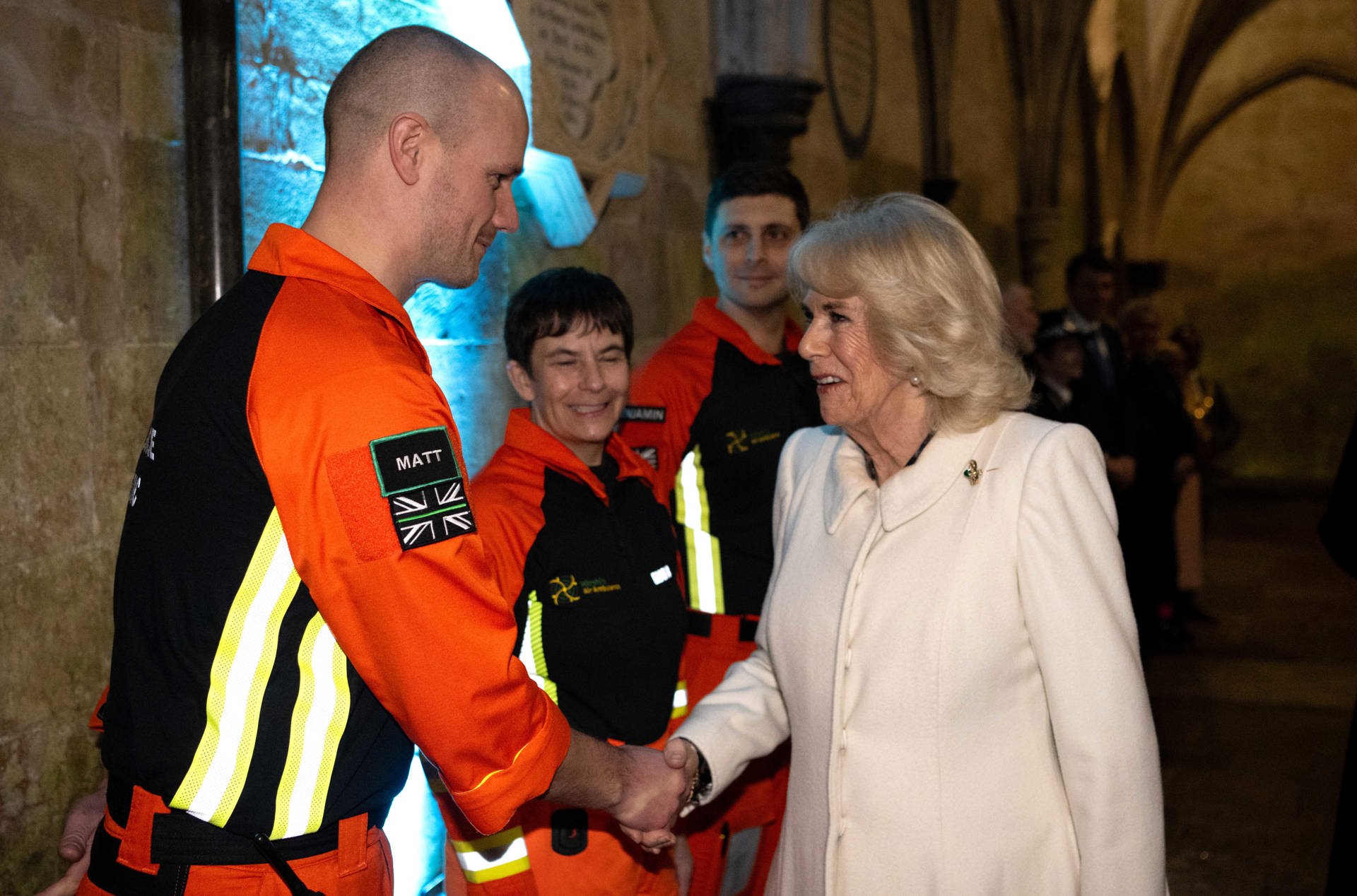 Her Majesty Queen Camilla meeting our trainee critical care paramedic Matt Metcalf at A Unique Concert in Salisbury earlier this year.